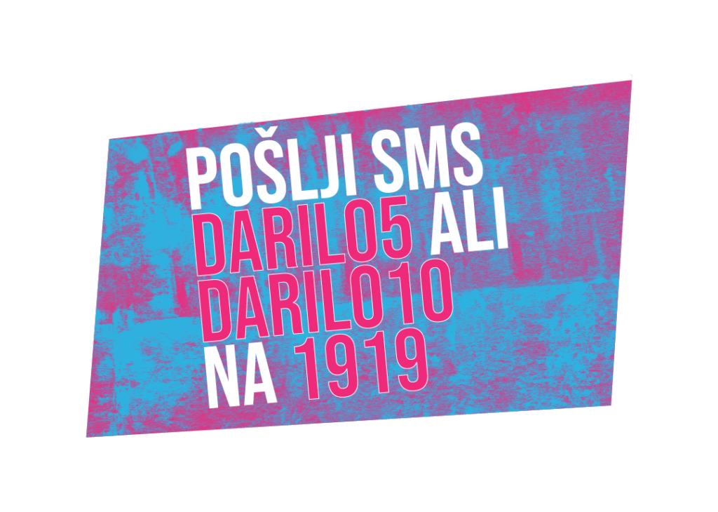 Lahko pa dogodek podpreš tudi tako, da pošlješ sporočilo SMS s ključno besedo DARILO5 ali DARILO10 na številko 1919 in prispeval_a boš 5 oz. 10 EUR za mlade s težavami v duševnem zdravju iz lokalnega okolja, ter jim pomagali do subvencioniranih psihoterapij.