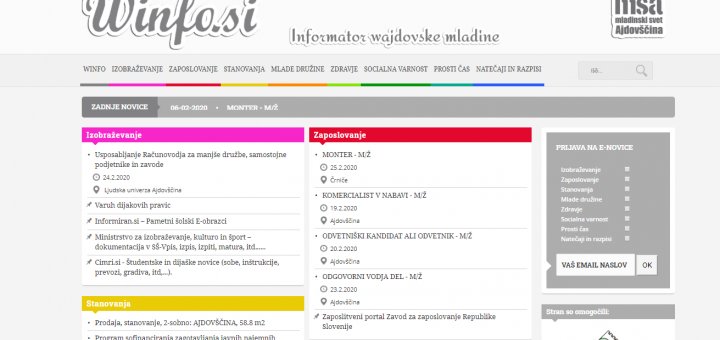 Mladinski svet Ajdovščina razpisuje nagradni natečaj za izdelavo logotipa prenovljenega portala za informiranje mladih v lokalnem okolju, občini Ajdovščina. Portal se imenuje Winfo – wajdovski informator mladih. Winfo je spletni portal, ki je...